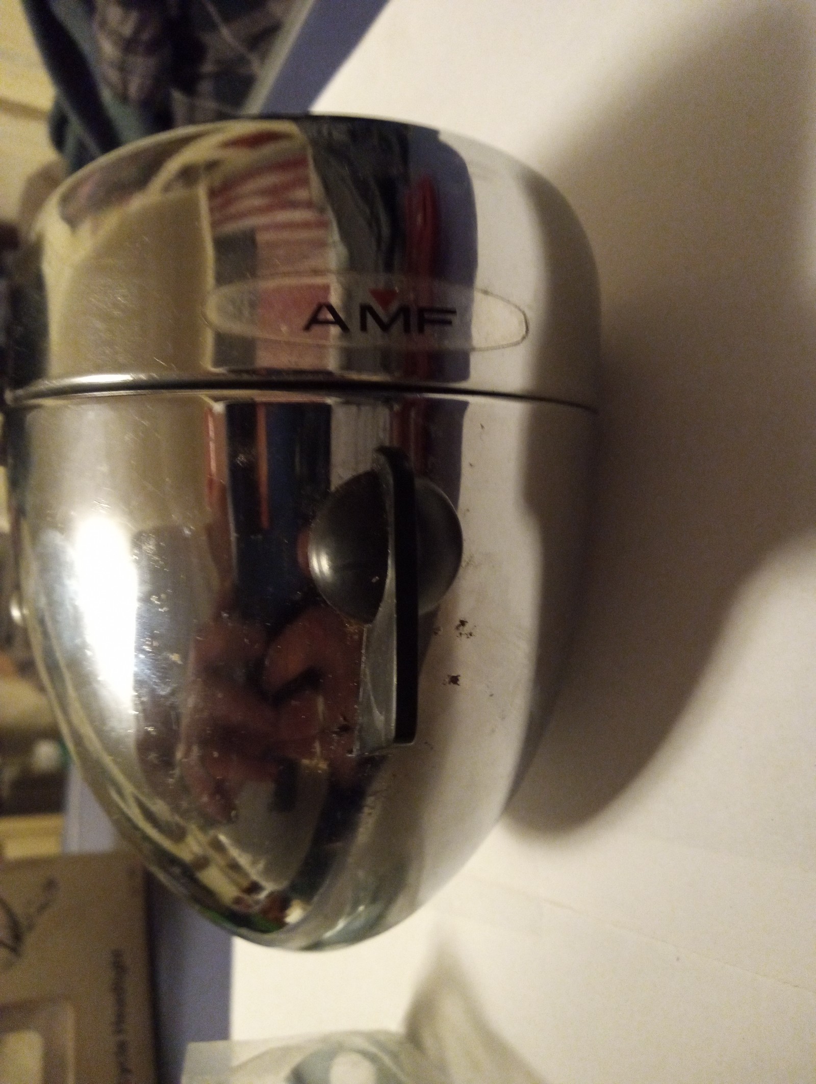 This vintage AMF front lamp light is a great addition to any bike enthusiast's collection. Made in Japan, this universal front light is perfect for any bike type. Its chrome color and vintage design add a unique touch to your cycling gear.